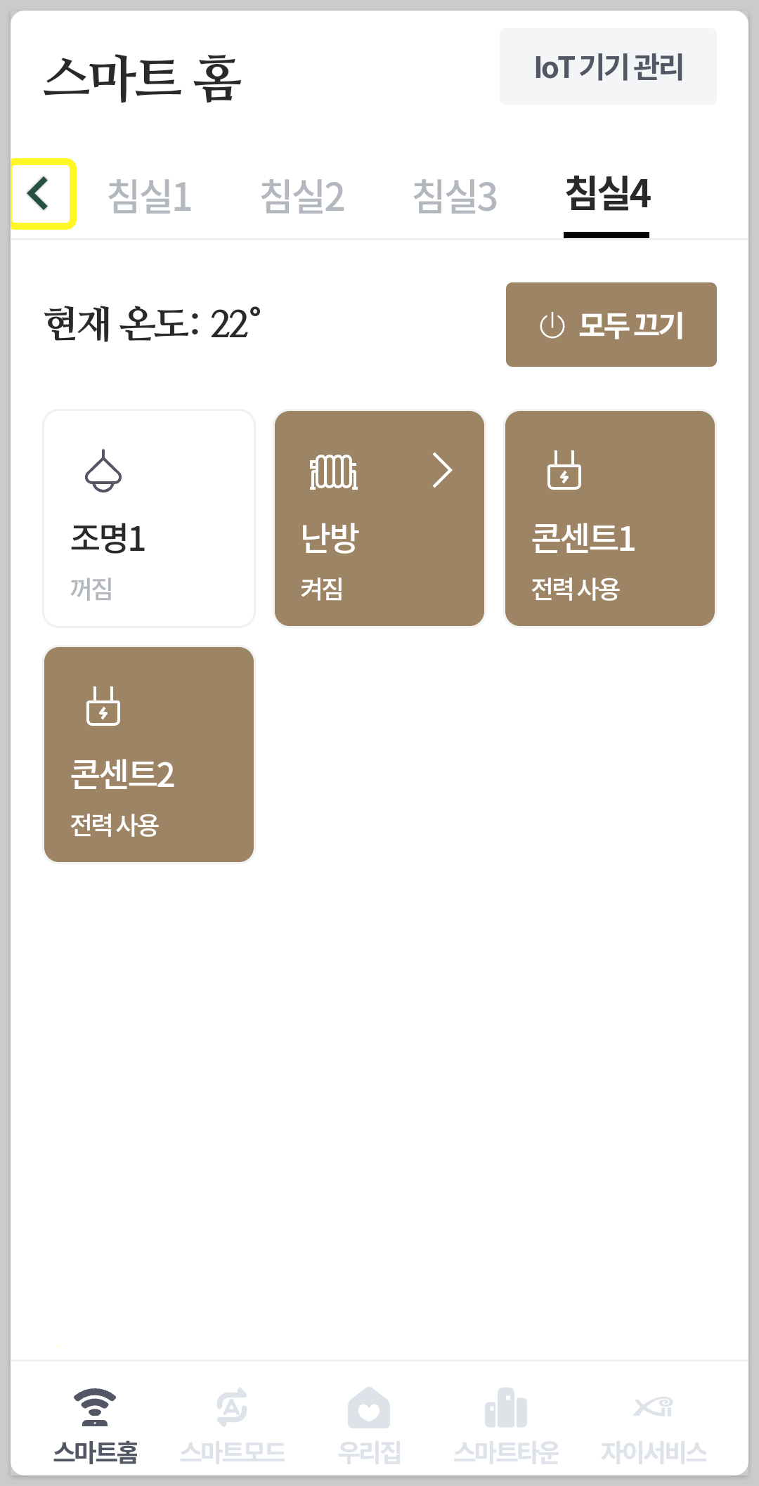 스마트홈 화면 우측 상단 IoT 기기 관리에서