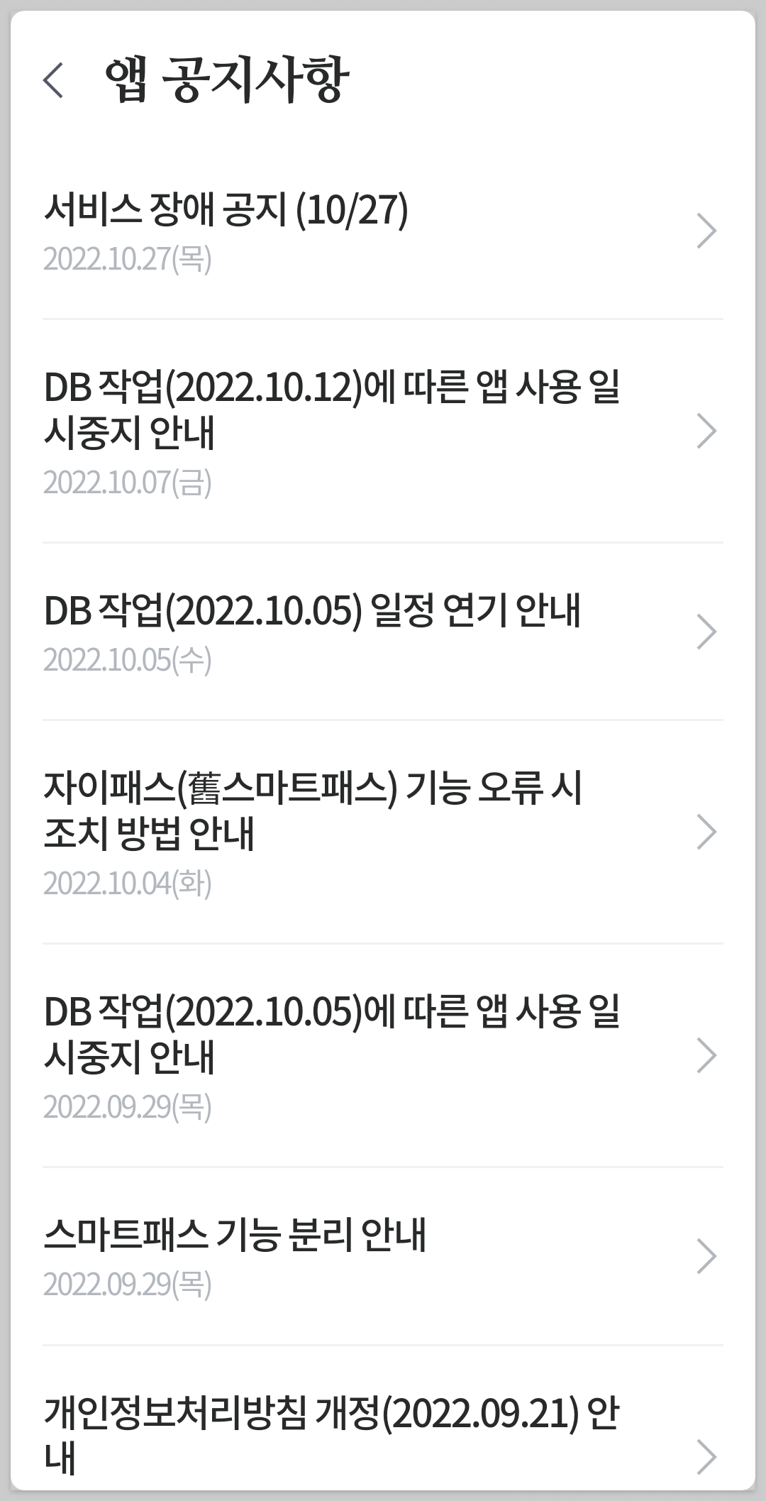 안내하는 서비스 장애 등의 공지내용입니다