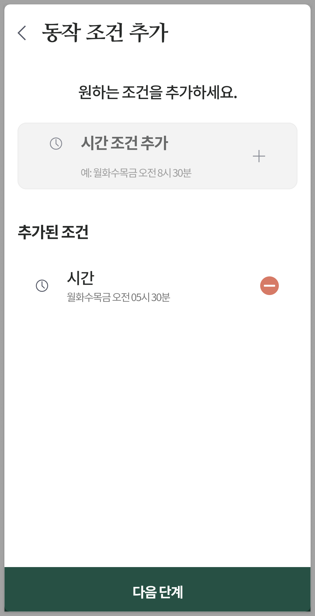 추가하기를 누르면 시간 조건이 표시됩니다