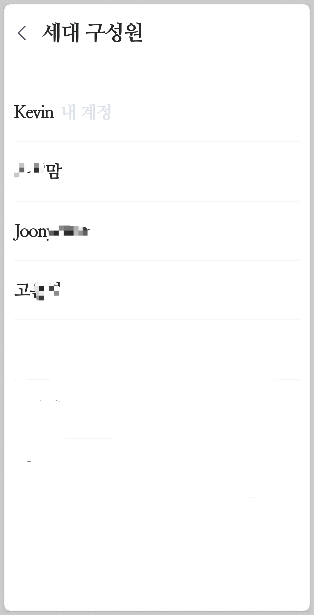 가족들 리스트를 닉네임으로 보여줍니다