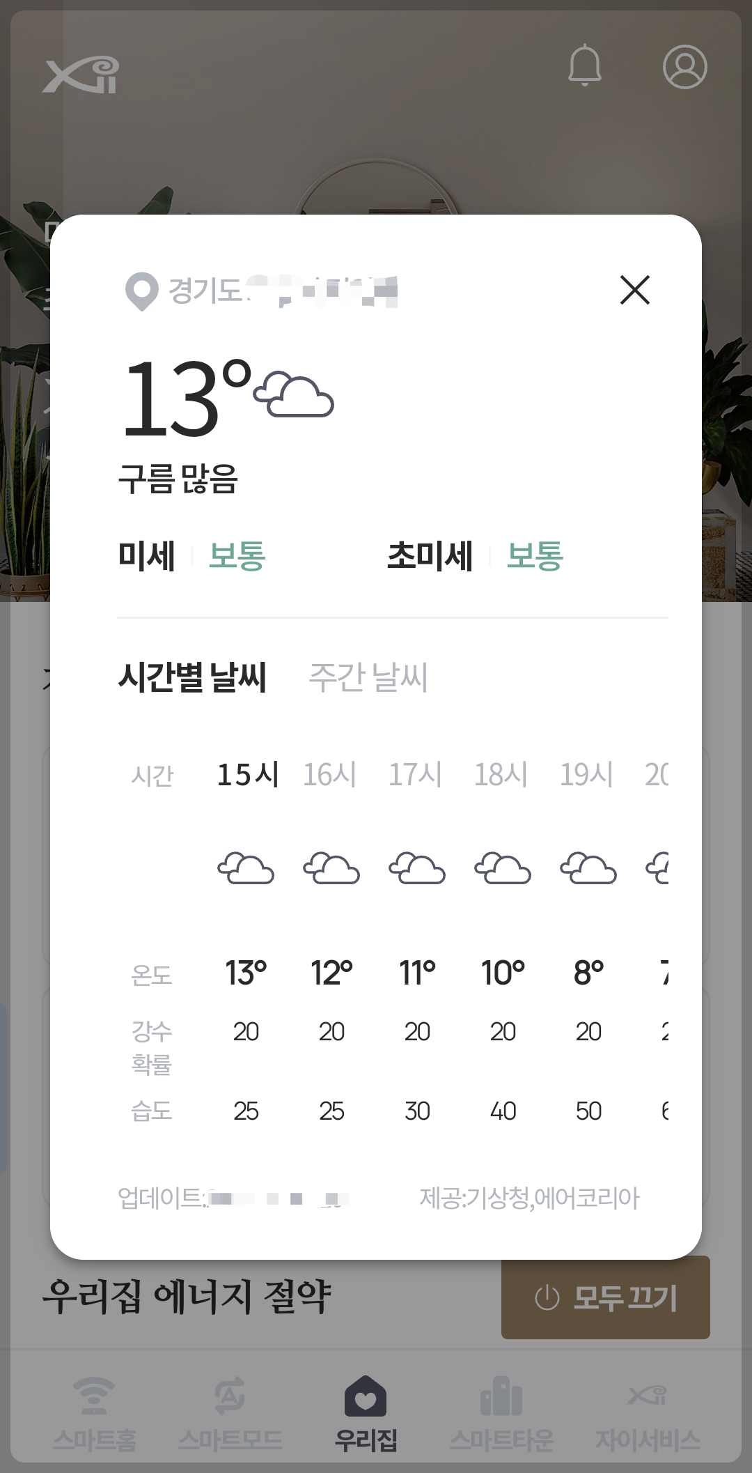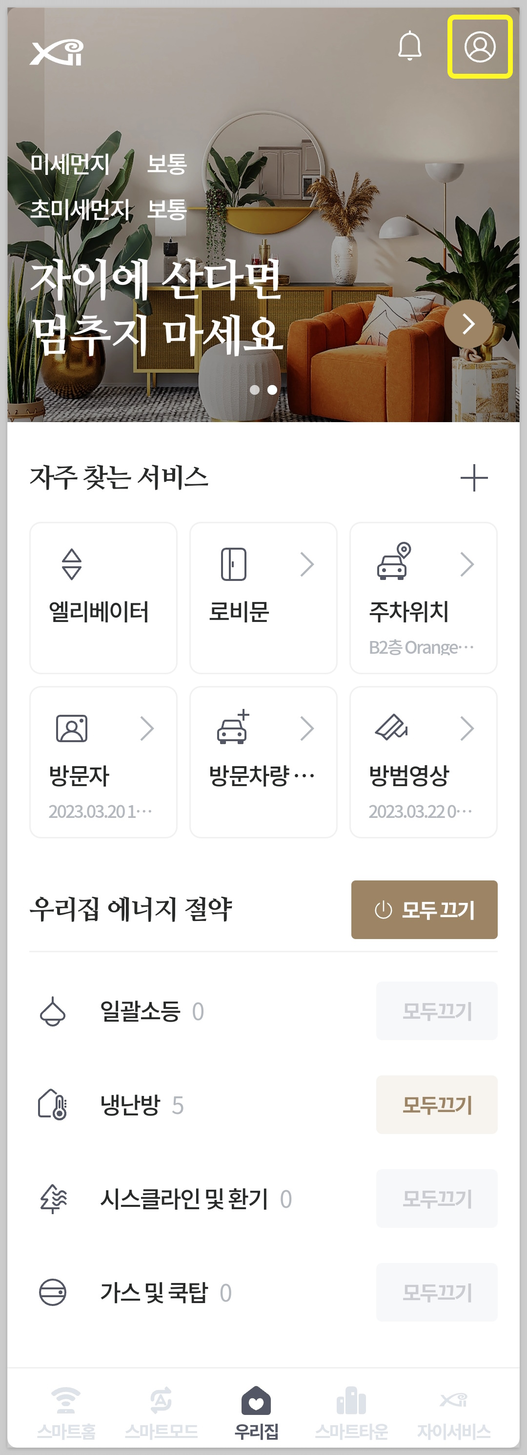 메인 화면인 우리집 화면 우측 상단의