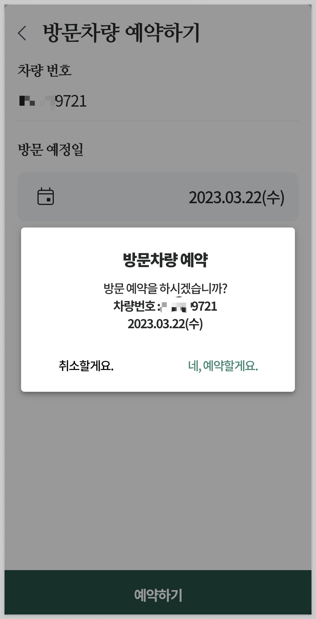 차량번호, 방문일자를 입력합니다