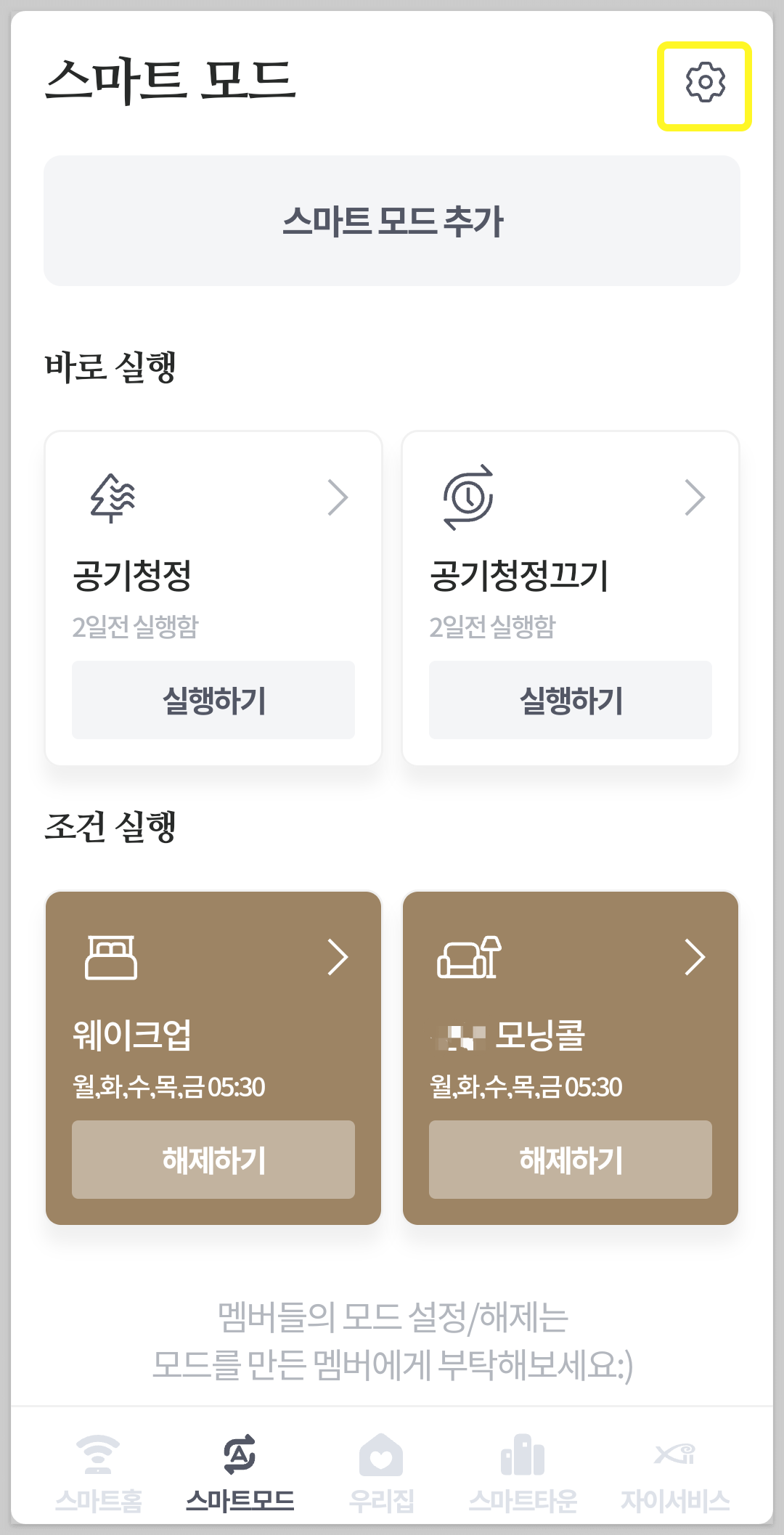 화면 상단 스마트 모드 추가 버튼을 누르면