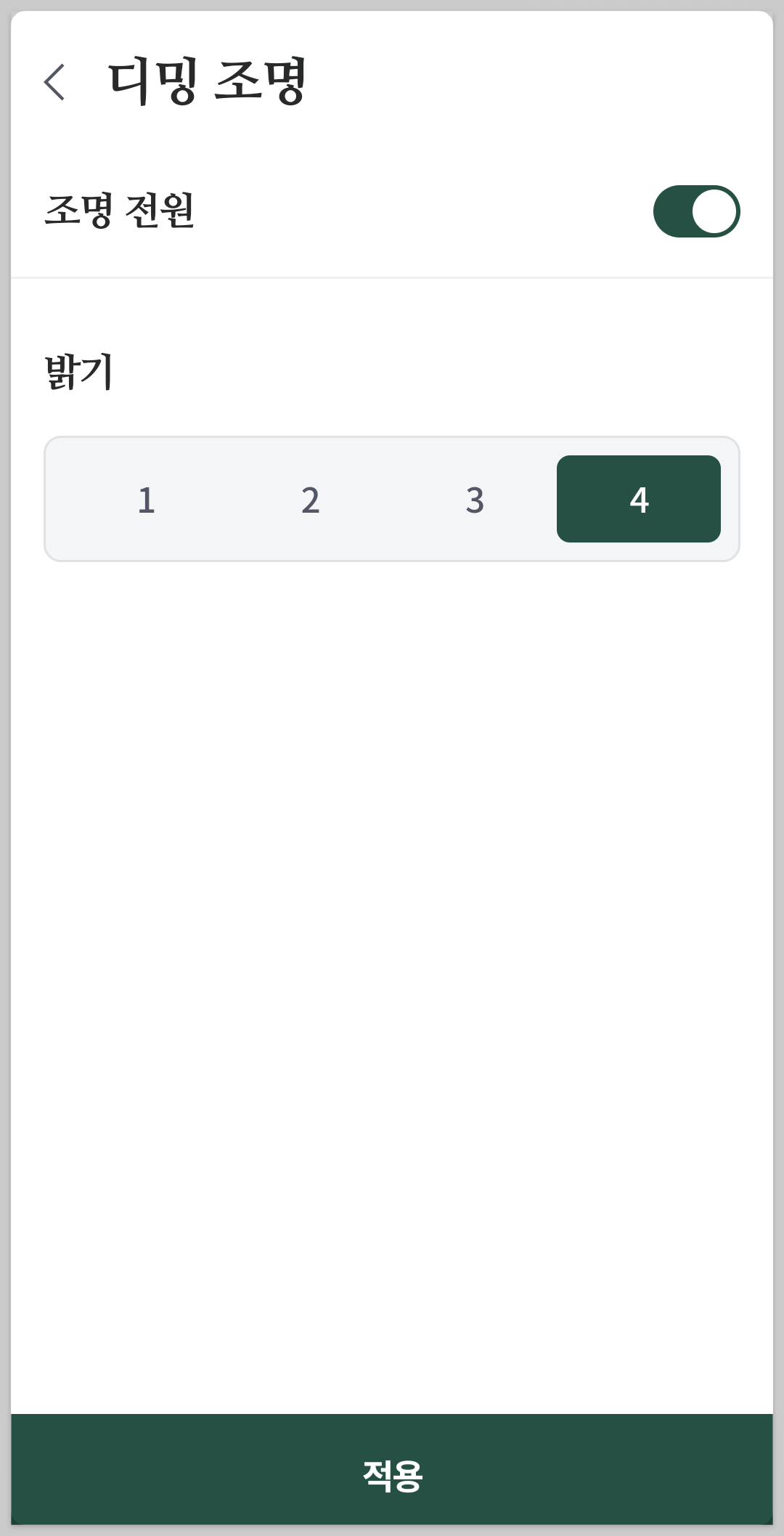 세부 화면에서 조도 단계를 설정해야 합니다
