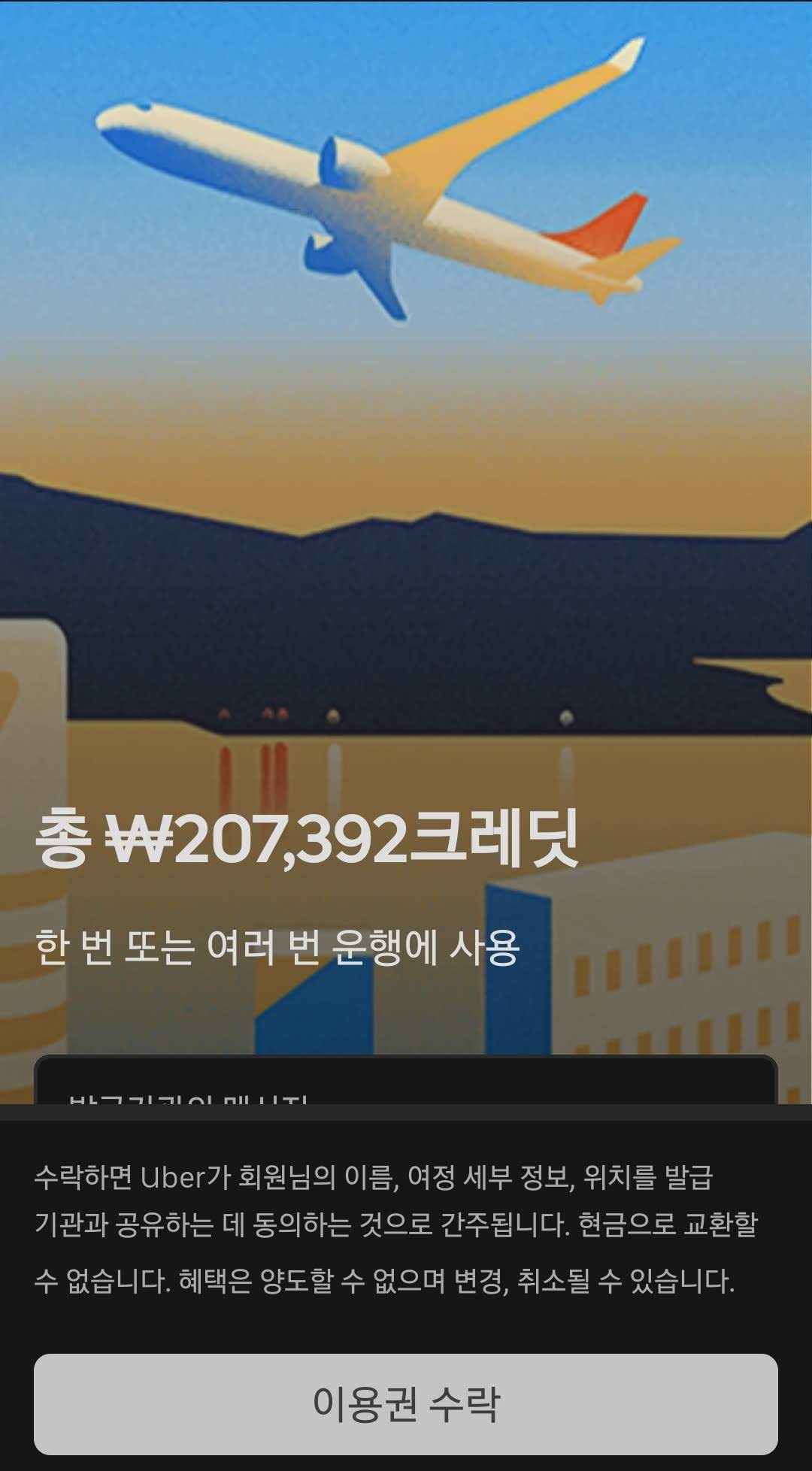 우버 이용권은 공항-호텔 왕복 이용권과