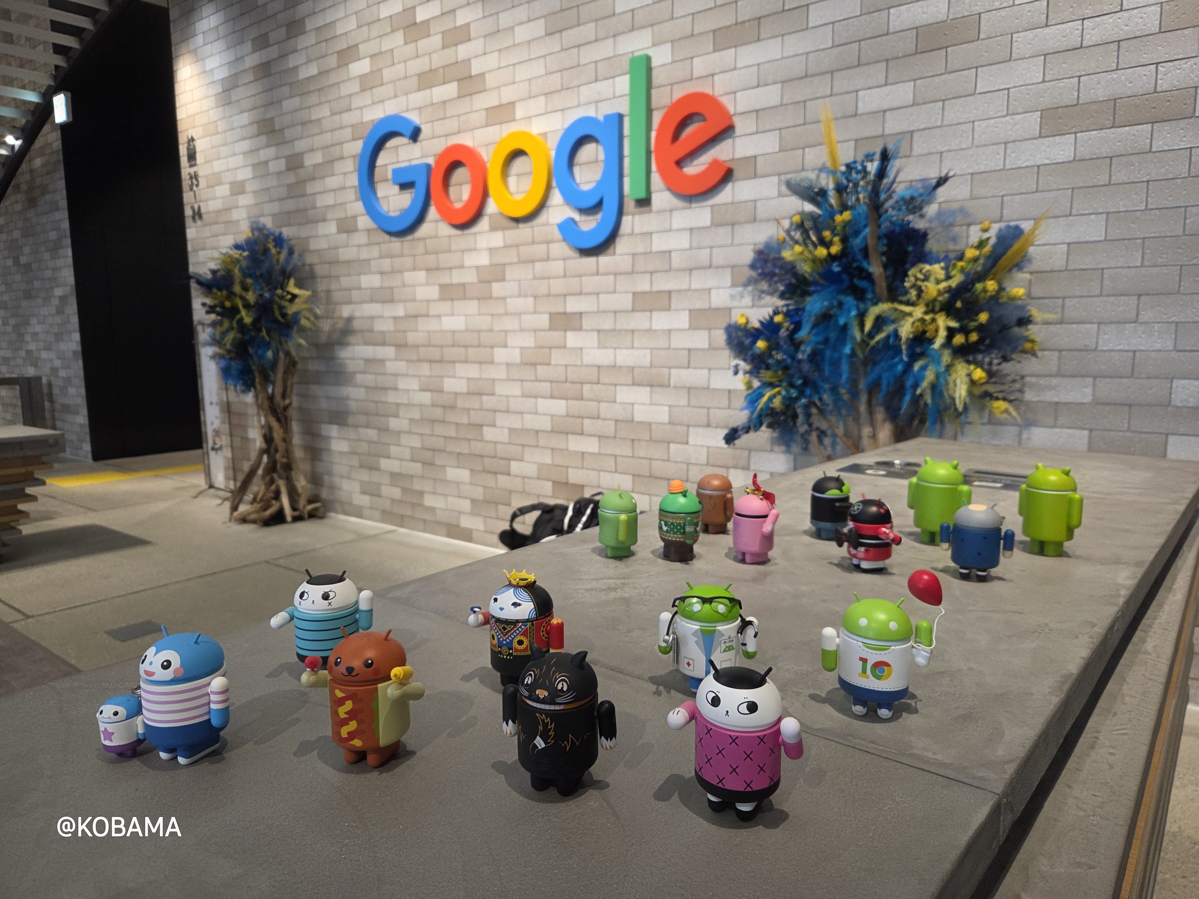 리셉션 데스크 옆에 안드로이드 버전별